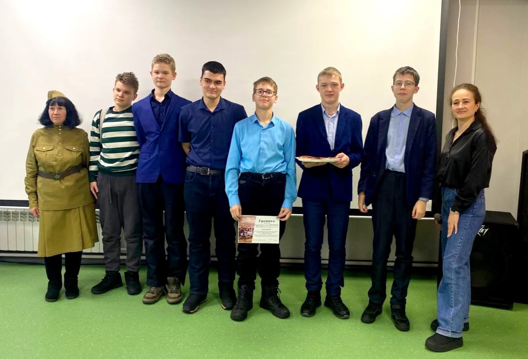 Поскольку 9-классники не смогли принять участие в этом мероприятии, капитана команды — Олега Каюкова поддержали знатоки истории из 7-8 классов, и вновь наша команда победила, а в качестве награды получила благодарственное письмо от депутата Городской думы Семкина А.А. и сладкий пирог!